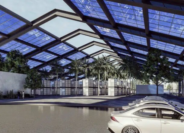 El proyecto de Waterstation ALPHA está enfocado en la eficiencia y la sostenibilidad. La planta de agua atmosférica está compuesta por una base subterránea de concreto y una estructura de acero que maximiza el uso del espacio.