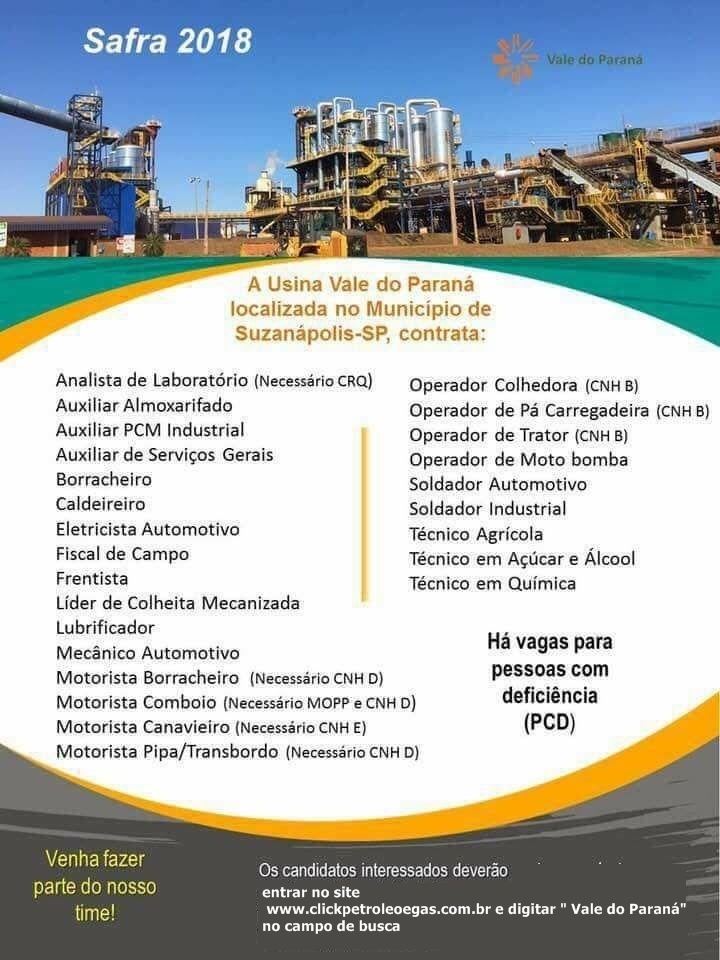 Ubicada en el interior de São Paulo, la Vale do Paraná contrata muchos profesionales. Confirmen la conexión del comunicado.