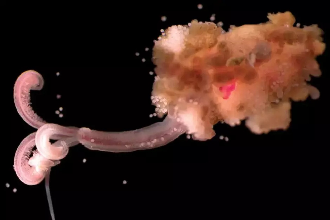 Al descender un ROV en lugares donde los investigadores habían depositado cadáveres de ballenas para estudio controlado, el equipo del MBARI registró la presencia de vermes coloridos emergiendo de huesos como pequeñas plumas. Algunos vivían en cráneos, otros en costillas y vértebras, siempre asociados a la materia ósea.