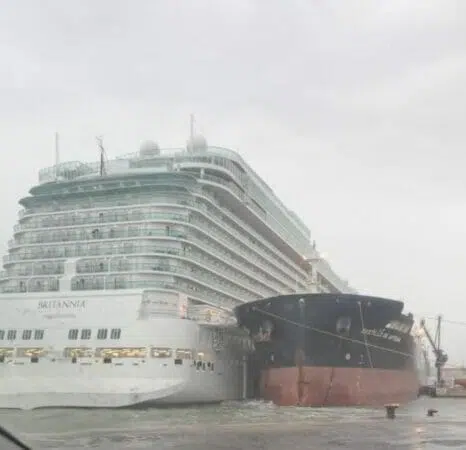 El barco de crucero Britannia, operado por P&O Cruises, se encontró en una situación delicada el pasado domingo, (27/08), al chocar con un petrolero en el puerto de Palma de Mallorca, España. El accidente ocurrió mientras el crucero estaba atracado, sin embargo, vientos fuertes lograron soltarlo de sus cabos de amarre, resultando en una colisión con una embarcación de transporte de petróleo, según la Autoridad Portuaria de las Islas Baleares.