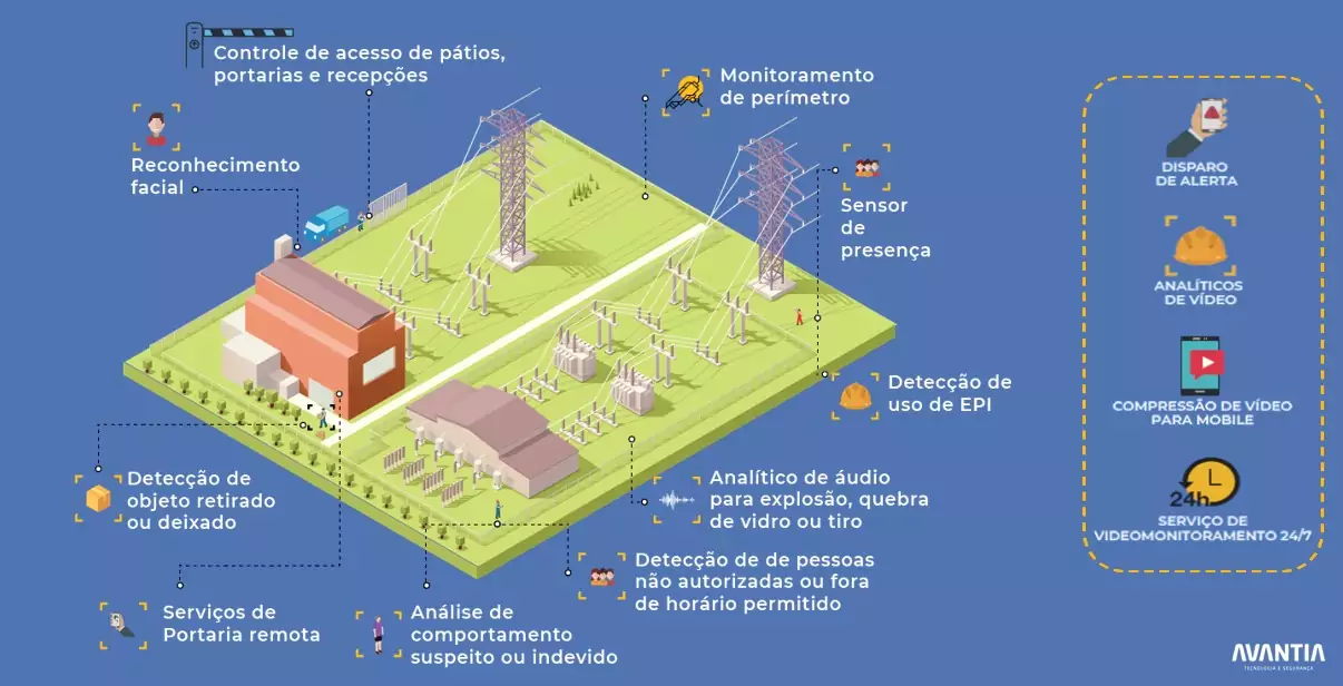 São Paulo, mayo de 2021 – Avantia, una de las empresas líderes en tecnología para seguridad en Brasil, explica cómo soluciones de inteligencia artificial en videomonitoramiento pueden beneficiar al sector eléctrico brasileño, contribuyendo con las operaciones de generación y distribución de energía, ya sea de fuente hidroeléctrica, eólica, fotovoltaica.