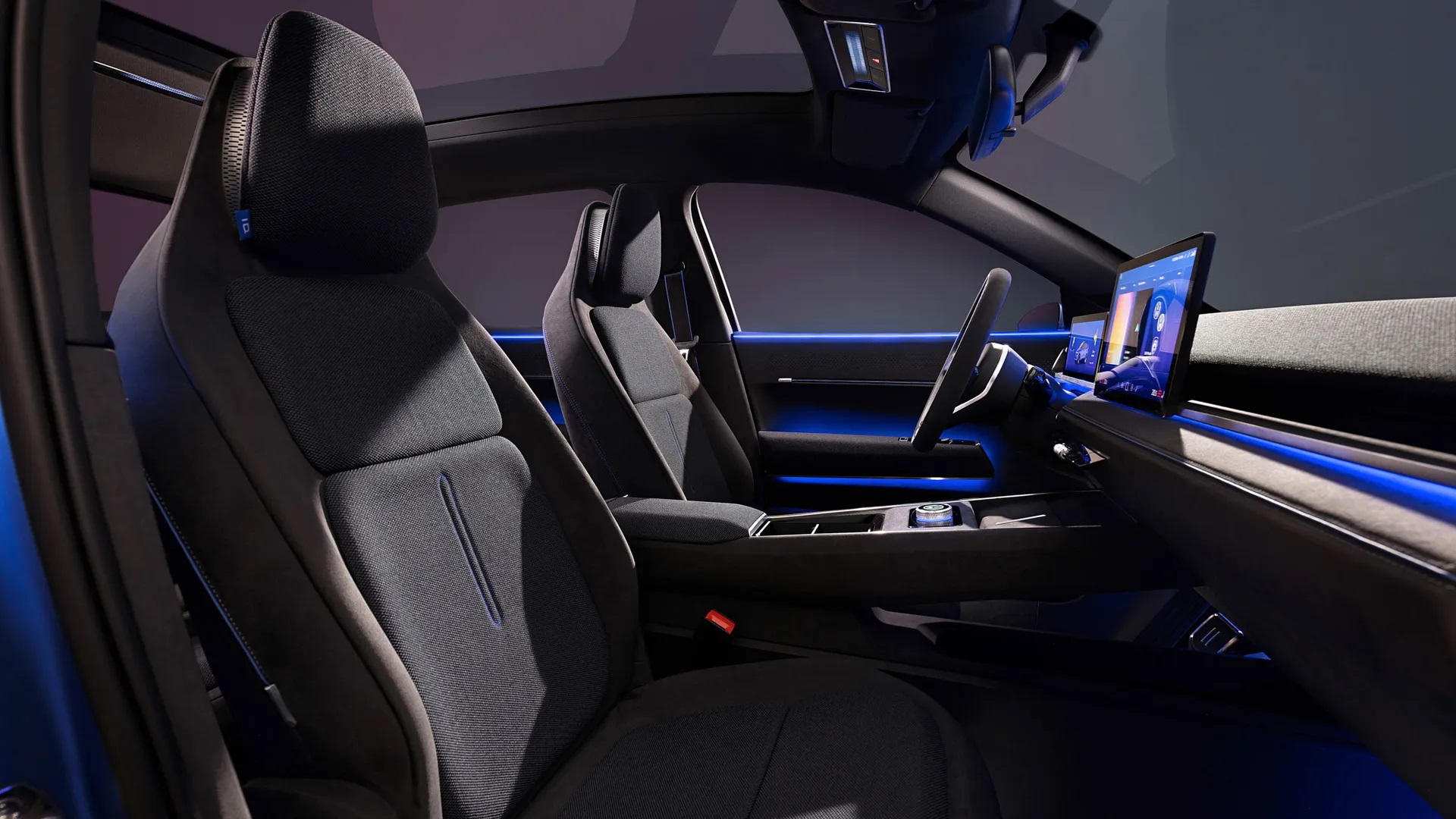 En la parte delantera, el faro doble en LED y la línea luminosa continua confieren identidad tecnológica, mientras que la parte trasera adopta luces conectadas y parachoques voluminosos. El interior apuesta por el minimalismo funcional, con pocos botones físicos y una pantalla multimedia flotante de 12,9 pulgadas, complementada por un panel digital de 10,9 pulgadas.