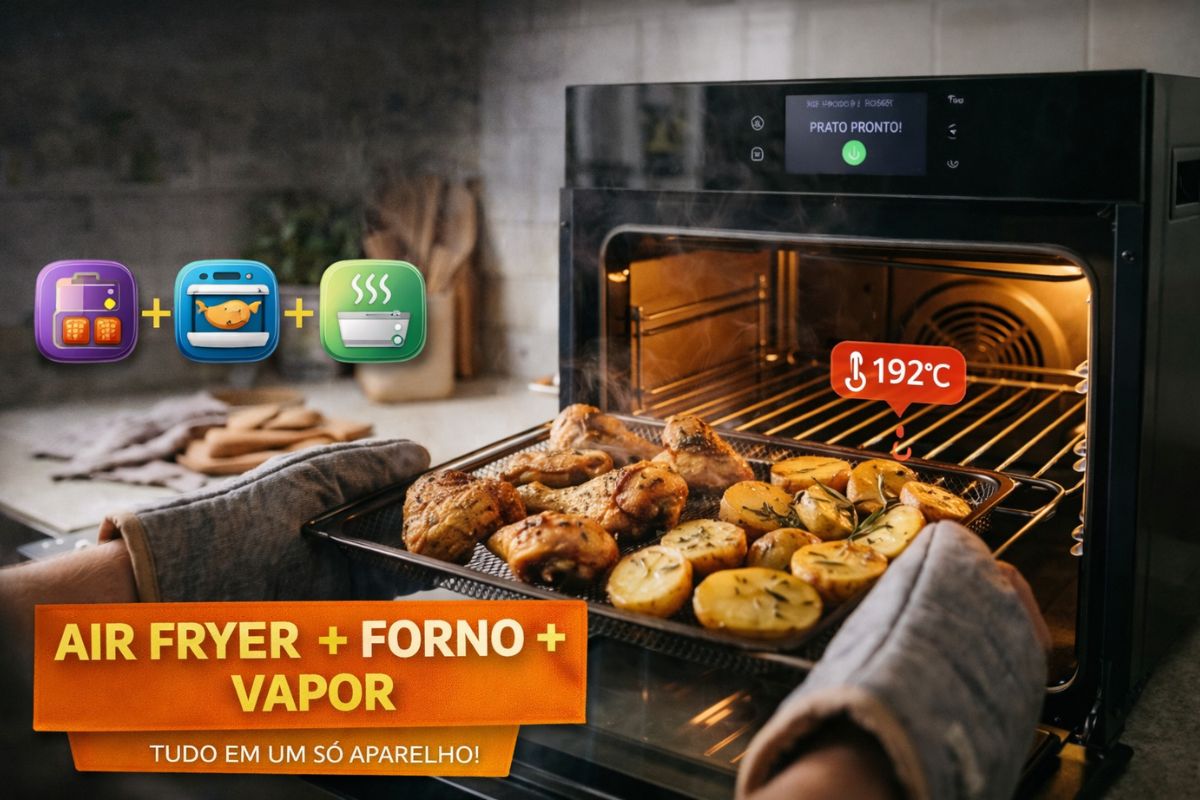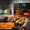 Olvídate de tener una air fryer, un horno eléctrico y una olla a vapor ocupando espacio en tu cocina, porque un horno inteligente de 30 litros reúne todas esas funciones, elige solo la temperatura ideal y además se apaga automáticamente cuando termina la cocción.